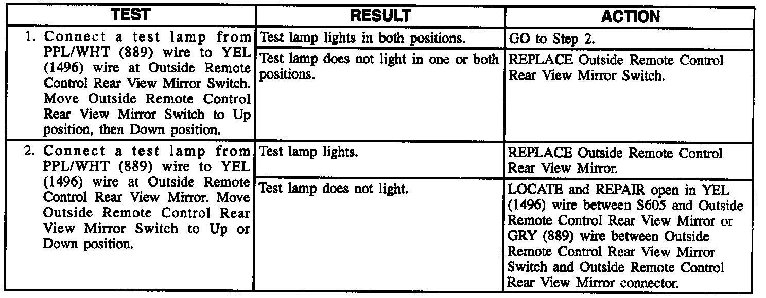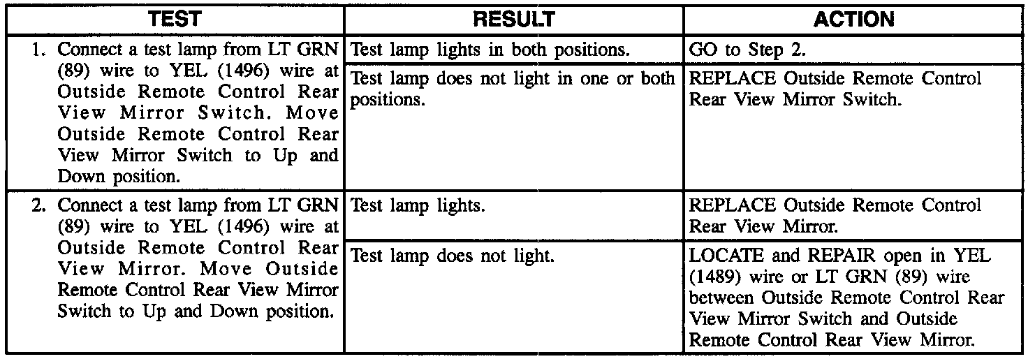 RH Power Mirror Does Not Move Up And Down