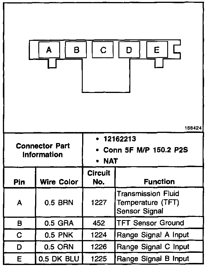 Automatic Transmission Fluid Pressure Manual Valve Position Switch Connector, Wiring Harness Side