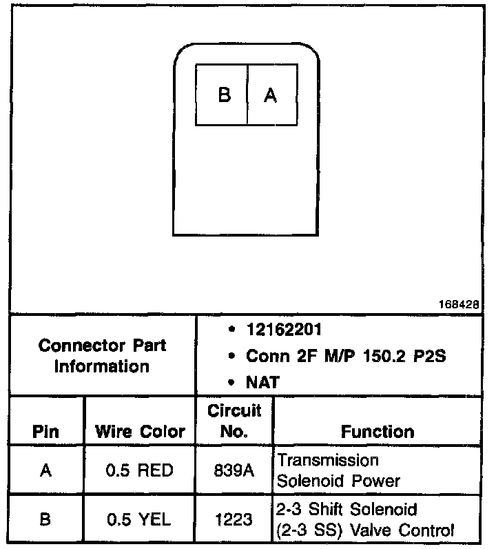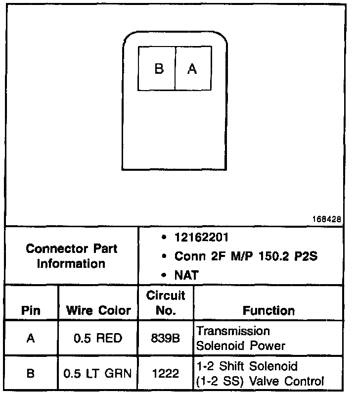 1-2 Shift Solenoid Valve Connector, Wiring Harness Side