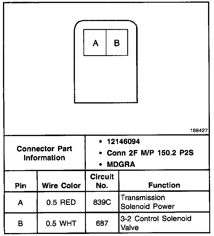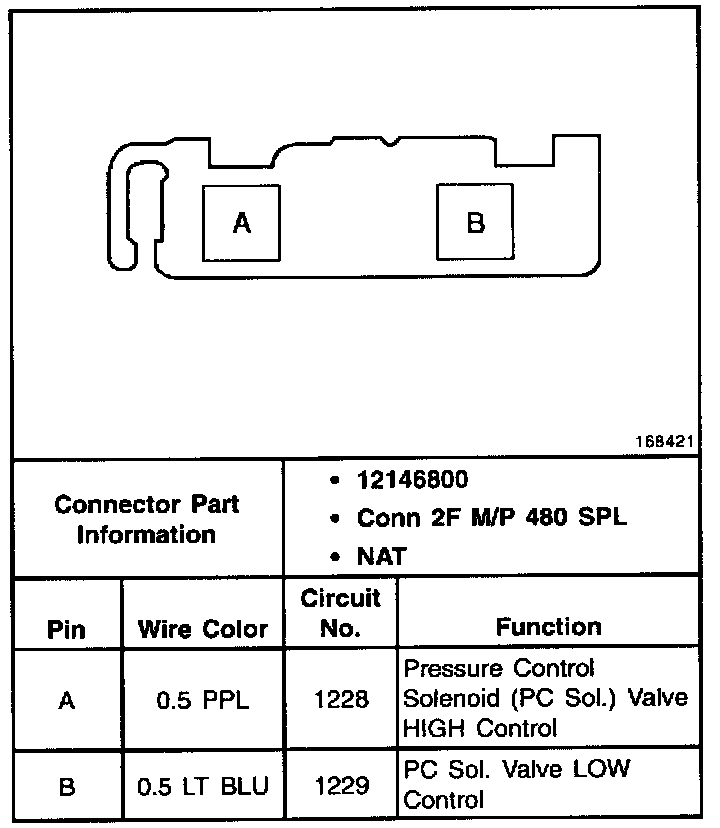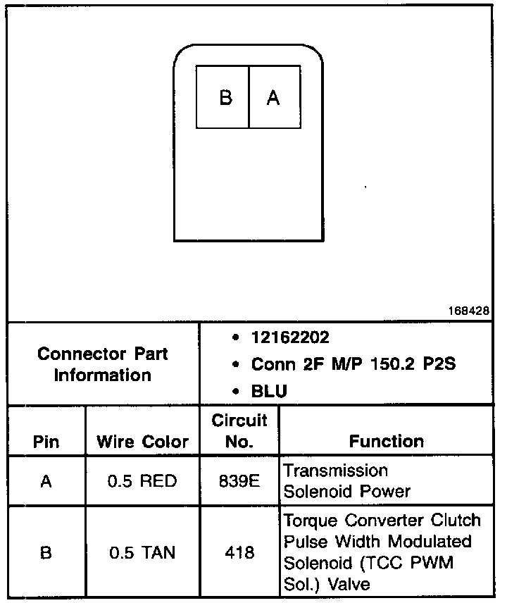 Torque Converter Clutch Pulse Width Modulated (TCC PWM) Solenoid Valve Connector, Wiring Harness Side