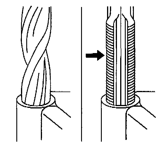 3. Tap the hole. Lubricate the tap with light engine oil. Clean the thread.