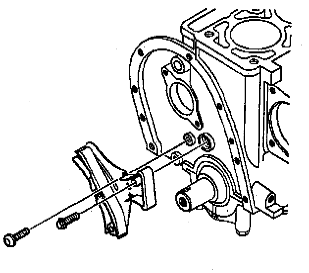 5. Install the timing chain tensioner. Do not tighten the timing chain tensioner bolts.