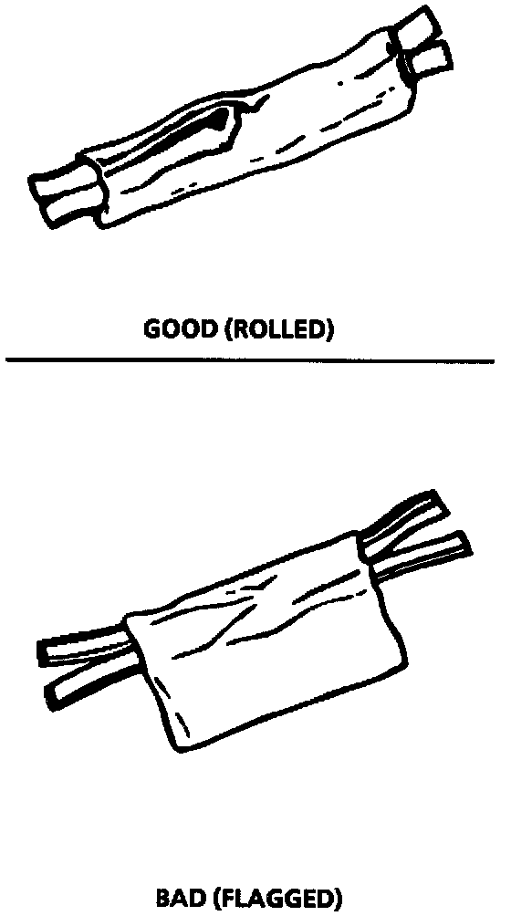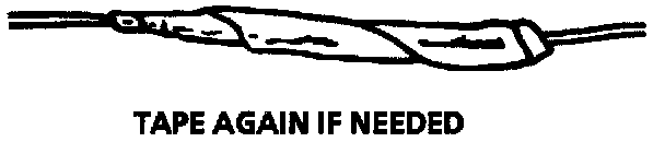 Center and roll the splicing tape. The tape should cover the entire splice. Roll on enough tape to duplicate the thickness of the insulation on the existing wires. Do not flag the tape. Flagged tape may not provide enough insulation, and the flagged ends will tangle with the other wires in the harness.