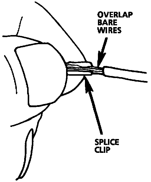 Select the proper clip to secure the splice. To determine the proper clip size for the wire being spliced, follow the directions included in the J 38125-A Terminal Repair Kit. Select the correct anvil on the crimper. (On most crimpers your choice is limited to either a small large anvil.) Overlap the stripped wire ends and hold them between your thumb and forefinger. Then, center the splice clip under the stripped wires and hold it in place.