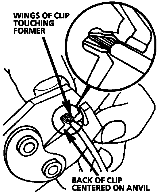 - Center the back of the splice clip on the proper anvil and close the crimping tool to the point where the former touches the wings of the clip.