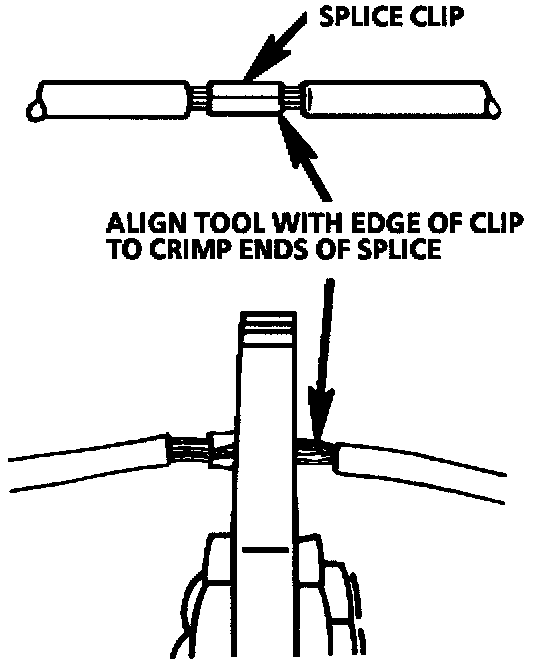 Crimp the splice again, once on each end. Do not let the crimping tool extend beyond the edge of the clip or you may damage or nick the wires.