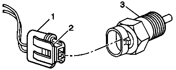 The Engine Coolant Temperature (ECT) sensor (3) is a thermistor (a resistor which changes value based on temperature) mounted in the engine coolant stream. Low coolant temperature produces a high resistance (100,000 ohms at -40°C/-40°F), while high temperature causes low resistance (70 ohms at 130°C/266°F).