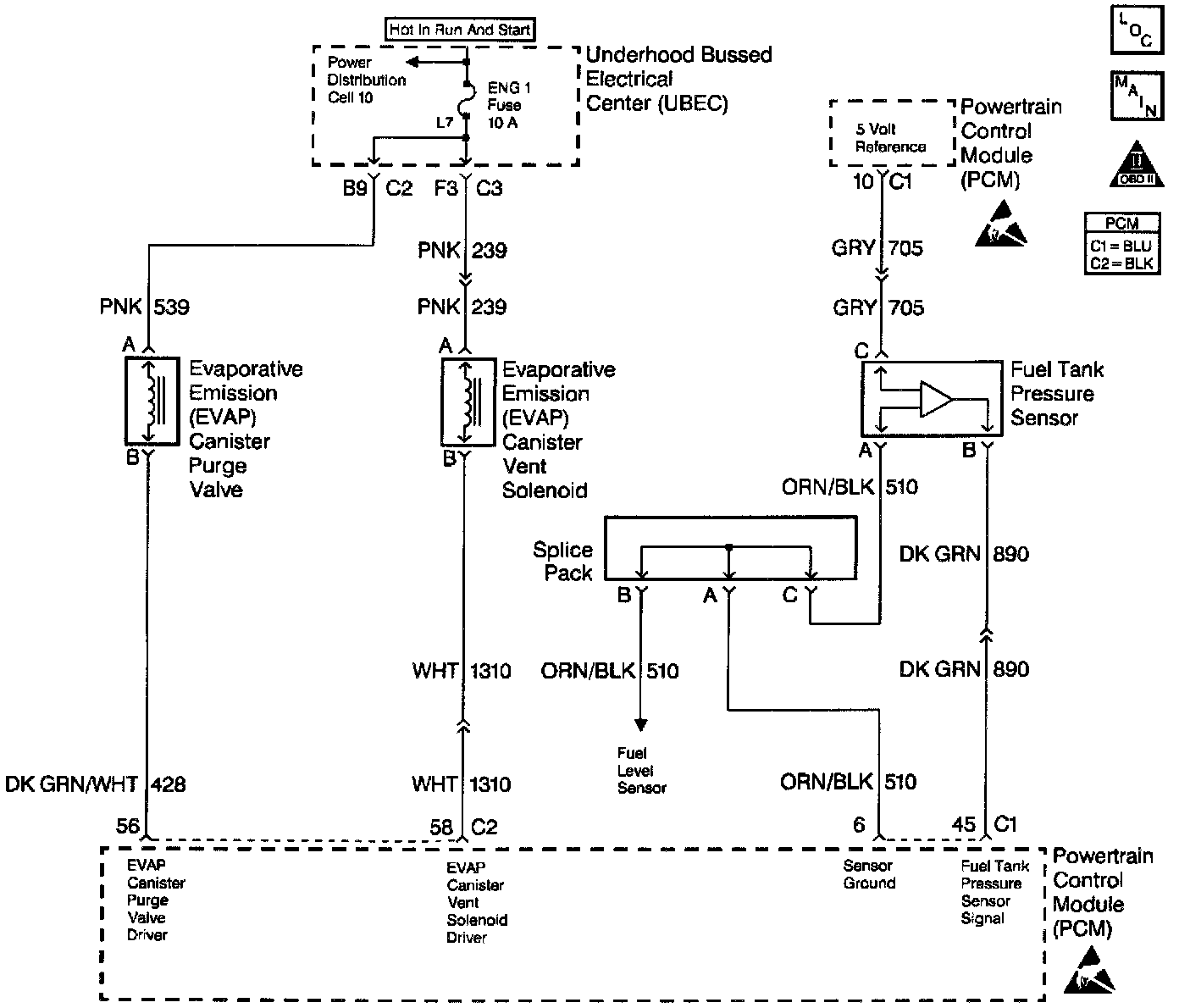 - A damaged harness. Inspect the wiring harness for damage. If the harness appears to be OK, observe the Fuel Tank Vacuum display on the scan tool while moving connectors and wiring harnesses related to the sensor. A change in the display will indicate the location of the fault.