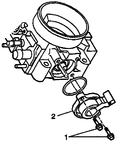 1. With the throttle valve in the normal closed (idle) position, install the throttle position sensor (2) on the throttle body assembly.