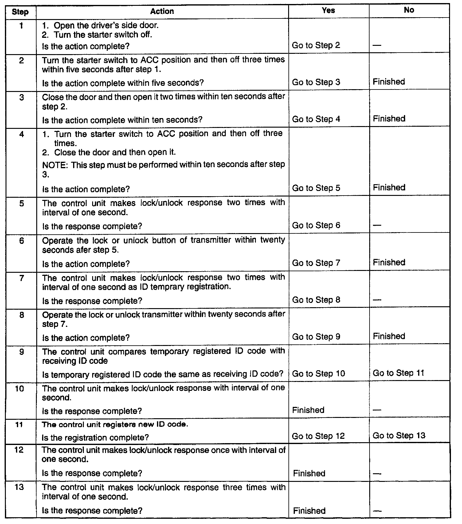This procedure additionally registers a new received ID code with holding registered ID codes. When total number of registered ID codes and newly registered ID code exceeds four, they are erased in order of older one.