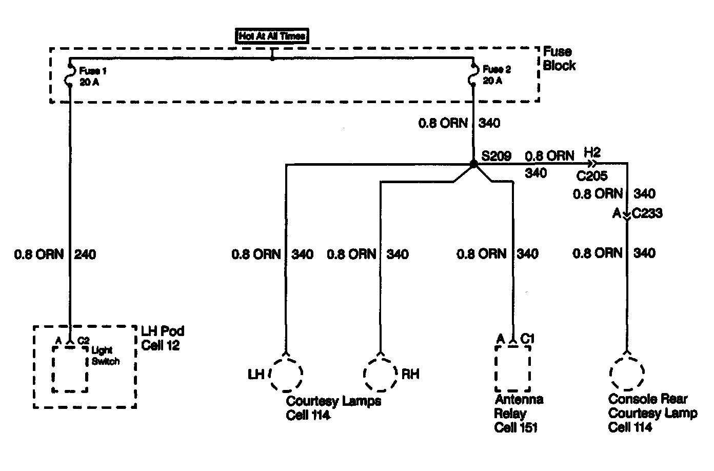 The Fuse Block Details schematic shows all of the wiring between a fuse and the components connected to the fuse. The Fuse Block Details schematic is extremely helpful in locating a short circuit that causes a fuse to open.