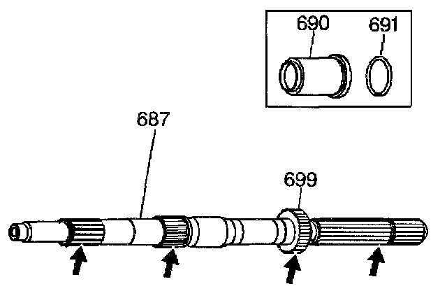 2. Inspect all splines on the output shaft (687) for cracks or damaged splines.