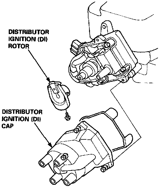 1. With the ignition switch OFF, remove the distributor ignition (DI) cap and distributor ignition (DI) rotor.