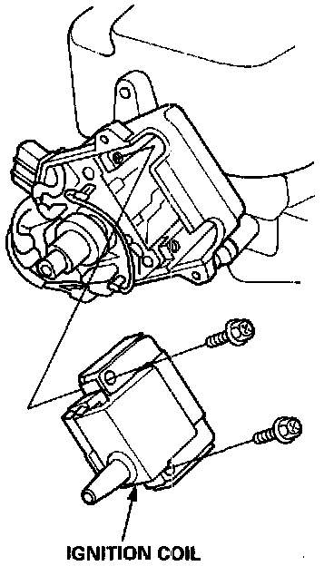 3. Remove the two bolts, and slide the ignition coil out of the distributor ignition (DI) housing.