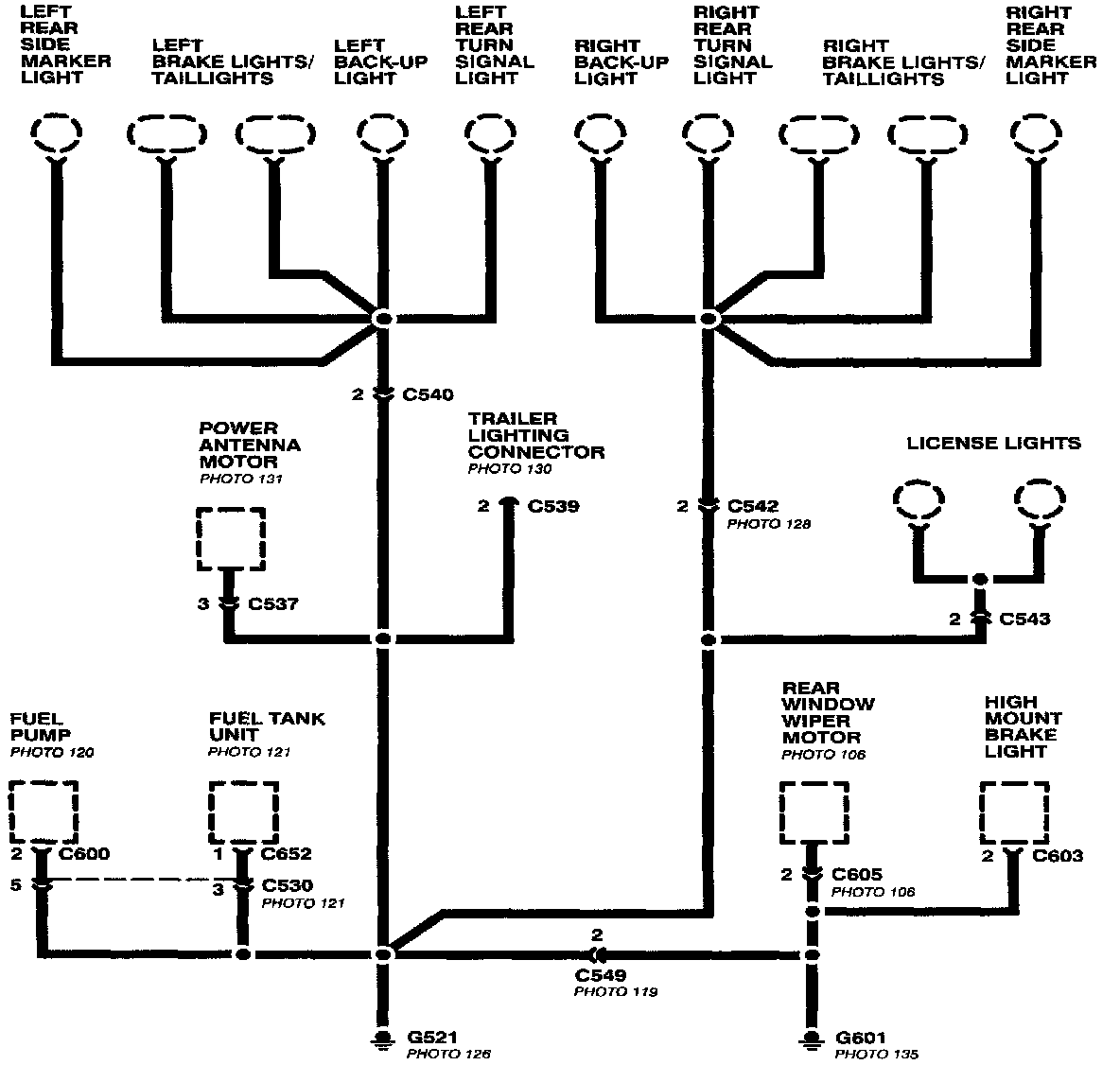 This sample Ground Distribution schematic shows all of the components that share the same ground point.