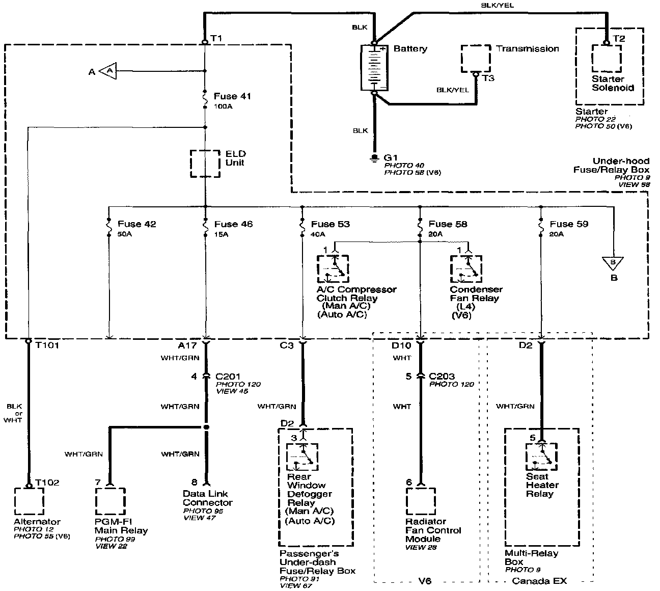 Individual circuit schematics begin with a fuse. The first half of Power Distribution, however, shows the wiring "upstream" between the battery and the fuses.