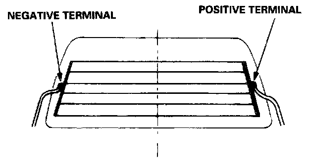 CAUTION: Be careful not to scratch or damage the defogger wires with the tester probe.1. Check for voltage between the positive terminal and body ground with the ignition switch ON (II) and defogger switch ON.