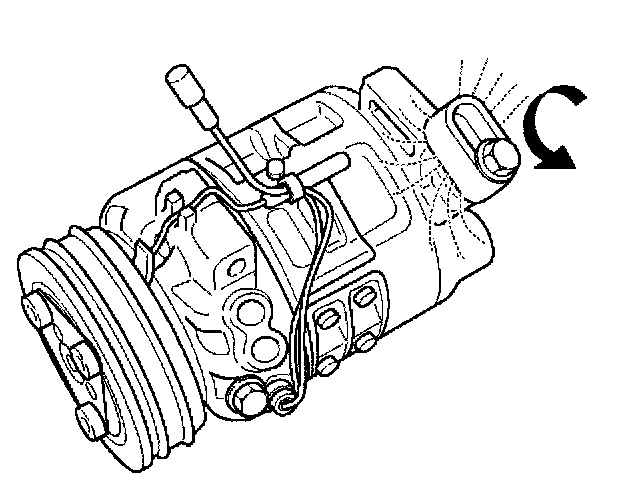 2. Turn the compressor several times by hand and release the compressor oil in the rotor.