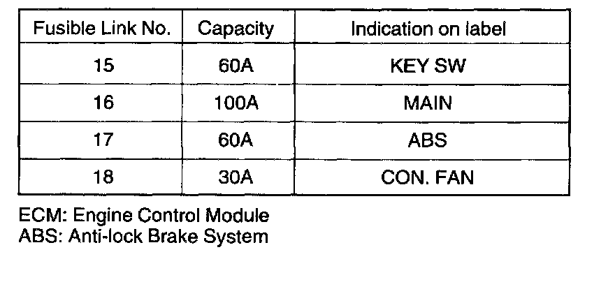 Reference Table of Fuse, Fusible Link and Circuit Breaker