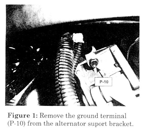 ^ (P-10) Ground terminal, on the alternator support bracket (Figure 1)