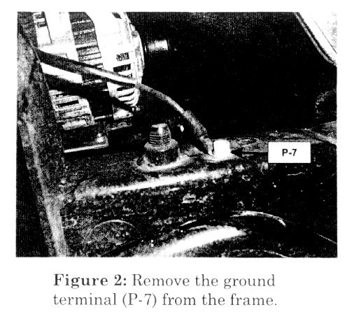 ^ (P-7) Ground terminal, near the alternator, on the frame (Figure 2)