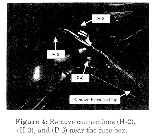 5. * If Service Campaign 9804L2 (Refer to SB98-04-L002 for details) was performed on this vehicle, the installed pigtail harness (P/N 5-86698-014-0) cannot be removed from the (H-2) connector socket of the vehicle. The new harness must be reconnected to this pigtail harness to maintain proper operation. If equipped, do not remove. (Figure 6)