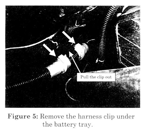 ^ Remove the harness clip under the battery tray. (Figure 5)