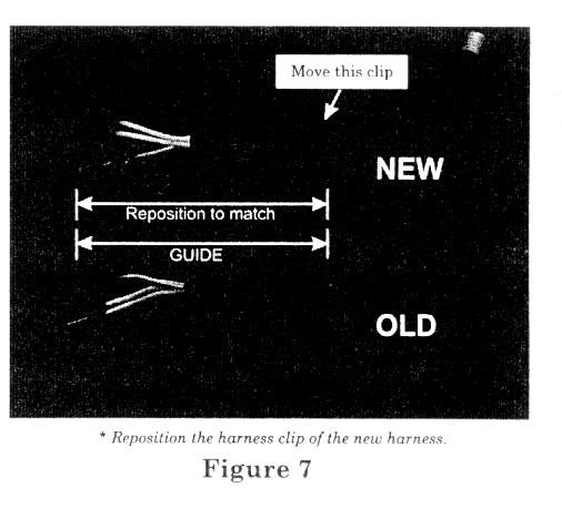 1. Using connector-to-clip distance of the old harness as a guide, reposition the harness clip of the new harness (Part Number 8-97211-283-0) to match the old harness. (Figure 7)