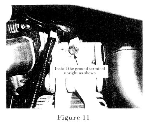 6. Install the (P-6) ground terminal on the alternator support bracket, with 90° bend at top. (Figure 11)