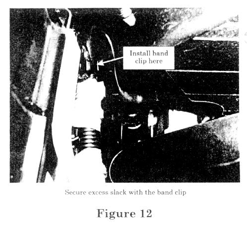 The excess slack of the harness must be secured from surrounding components with the band clip to prevent possible damage to harness due to chafing.