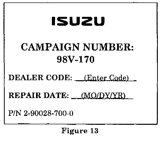 Isuzu dealers must service all affected vehicles at no charge to the owner, regardless of mileage, age of vehicle, or ownership.