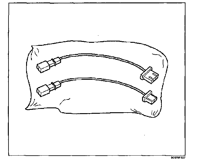 No more than two connectors are used at any time. One of the small connectors is used to substitute for the load of the driver air bag assembly when it is connected at the top of the column to the SRS coil assembly. Another small connector is used to substitute for the load of the driver air bag assembly and the SRS coil assembly when it is connected at the base of the column to the SRS wiring harness. The third small connector is used to substitute for the load of the passenger air bag assembly when connected to the passenger air bag assembly harness connector.