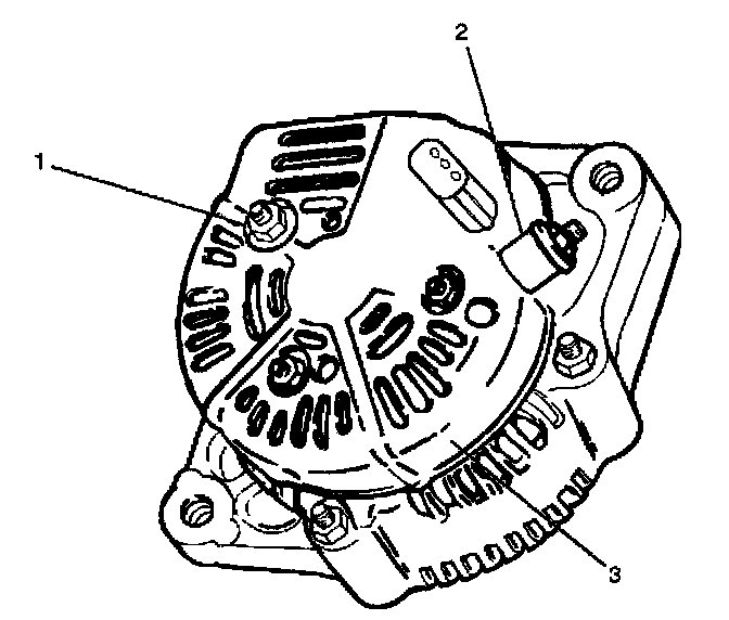 2. Remove three nuts(1) on the rear cover and a nut on terminal B and insulator, then remove the rear cover( 3).