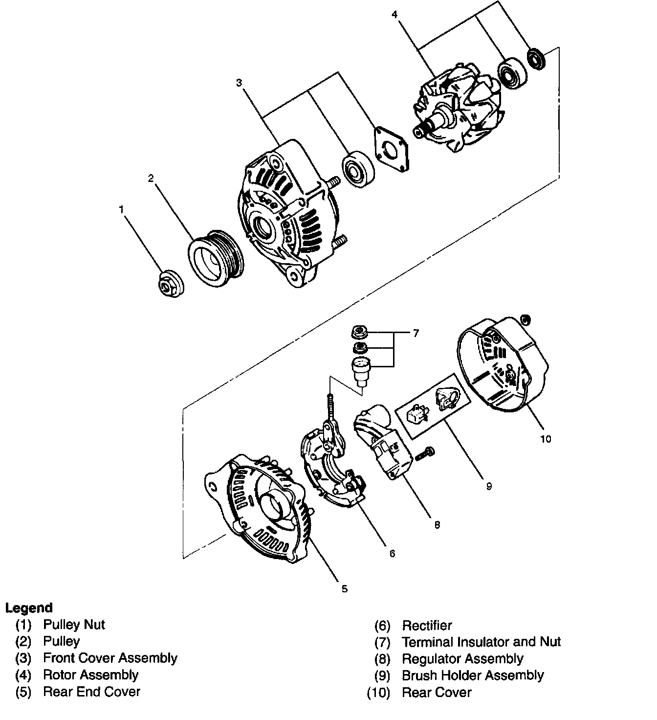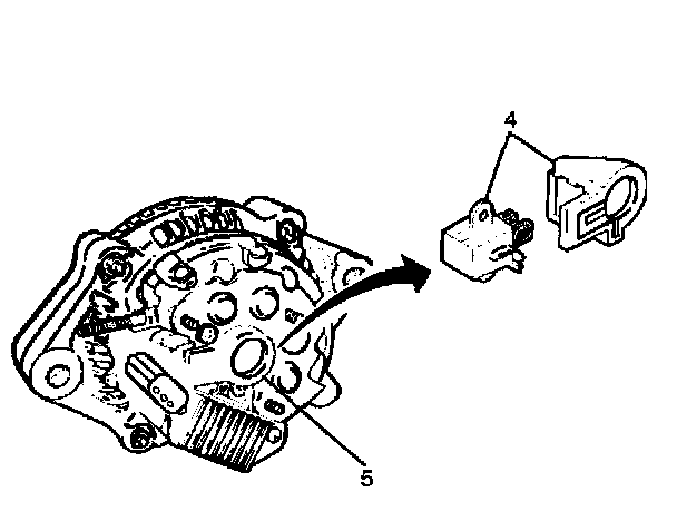 3. Remove two screws that fix the brush holder(5) and rectifier, then remove the brush holder assembly(4).