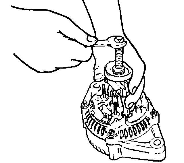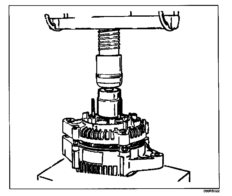 1. Using a press with a socket wrench attached, reassemble rotor and rear end cover assembly in the front cover.