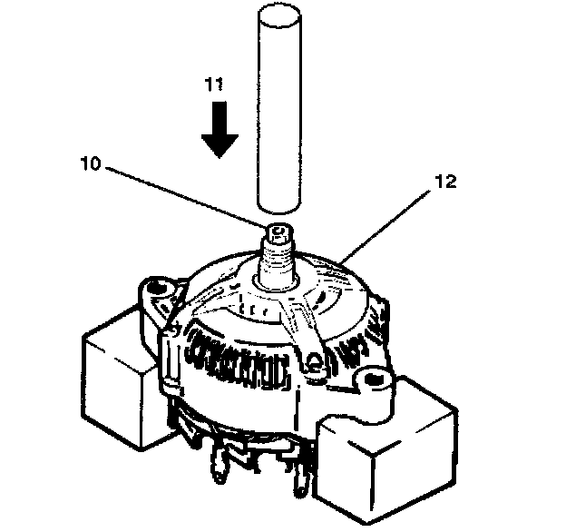 10. Pull the rotor assembly(10) off the front cover assembly(12) using a bench press(11).