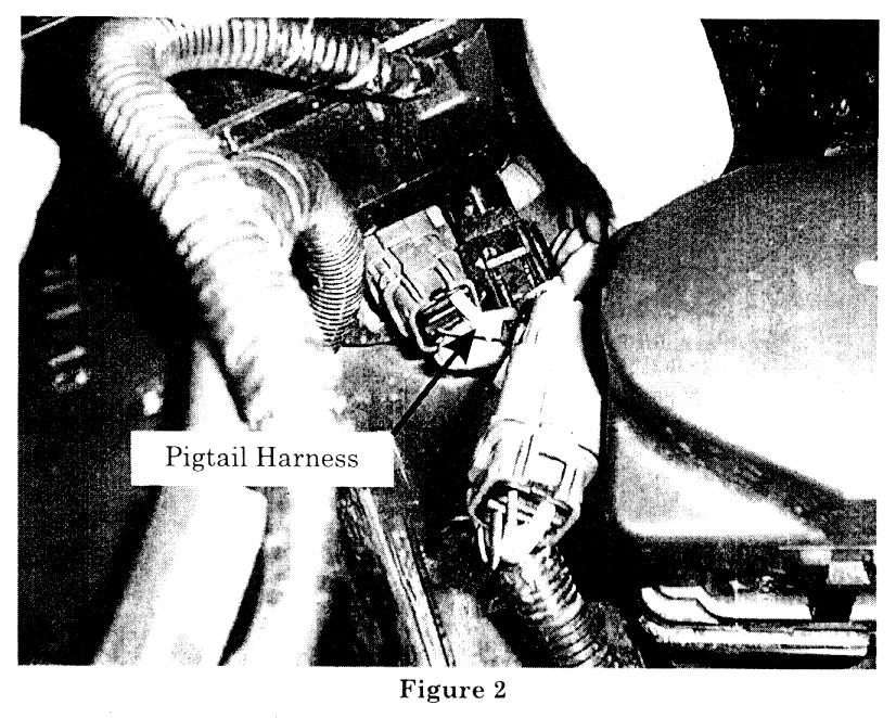 2. Connect each end of the pigtail harness, supplied from the Supplemental Generator Campaign Kit (Part No.2-90000-810-0), to the appropriate grey 3-pin connector of the engine & battery harness (figure 2).