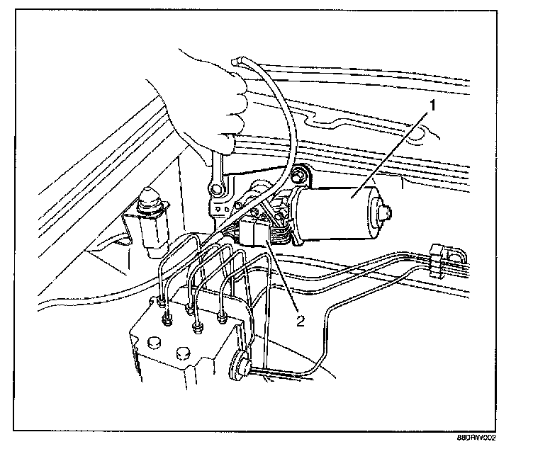CAUTION: To facilitate the removal of the nuts, be sure to put out the tip portion of the linkage sufficiently through the mounting hole of the motor by sliding the wiper blade slowly.