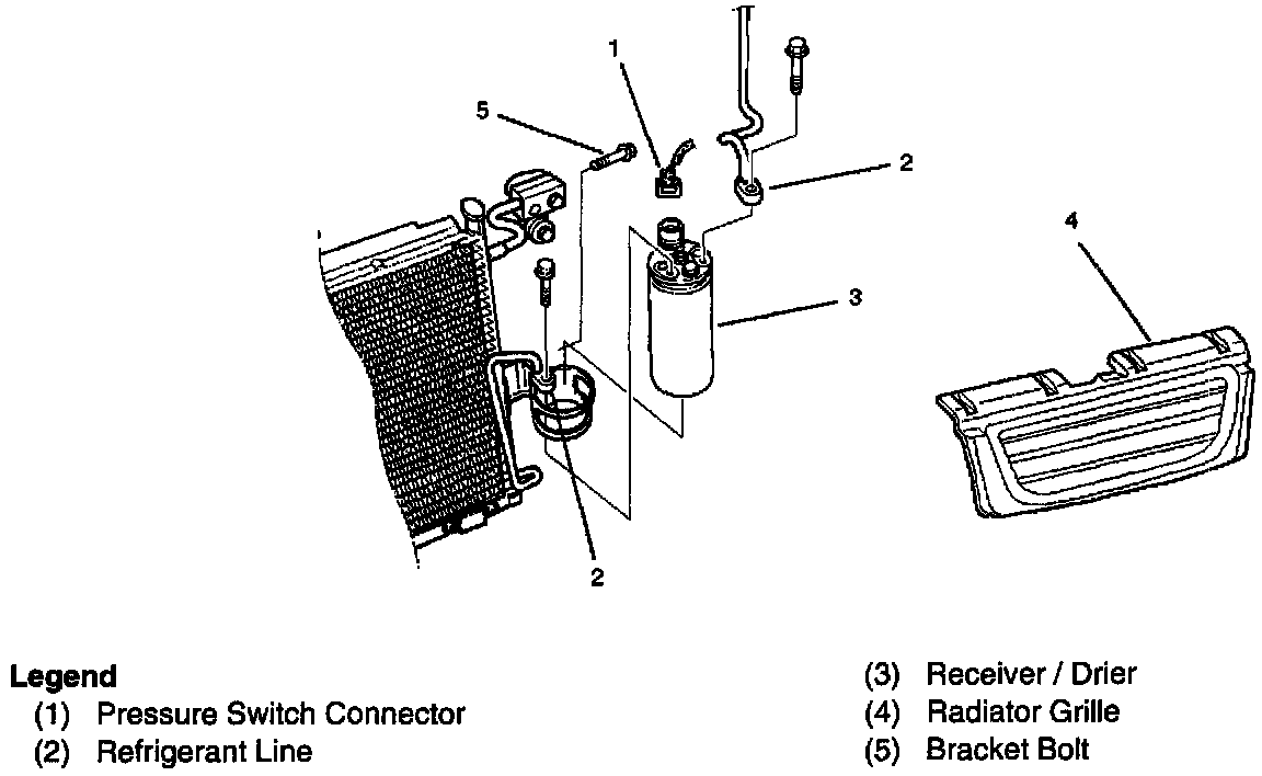 - Loosen the bolt, then, using care not to touch or bend the refrigerant line, carefully pull out the receiver/drier.