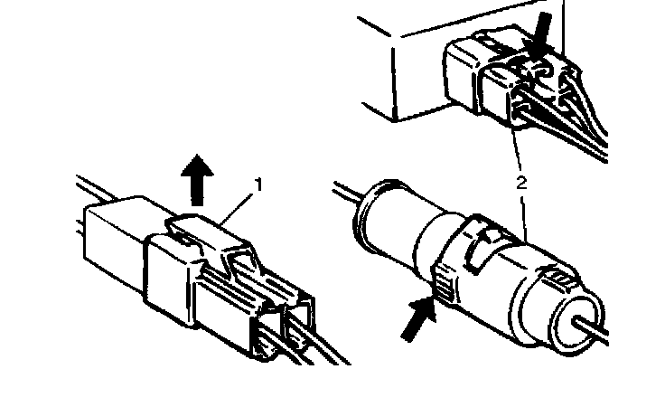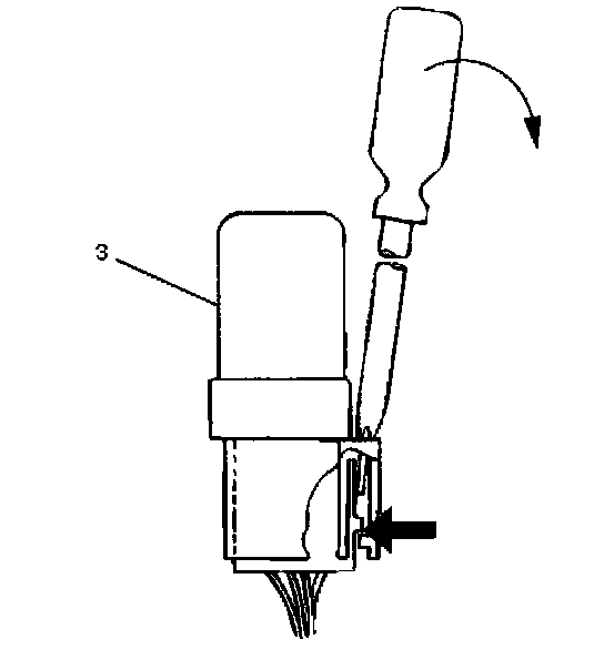 2. Push the tang lock (2) up (in the direction of the arrow in the illustration). Pull the wire (3) with pin (4) free from the wire side of the connector.