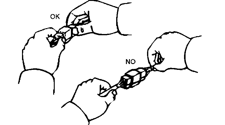 Never pull on the wires to separate the connectors. This will result in wire breakage as shown in the figure.