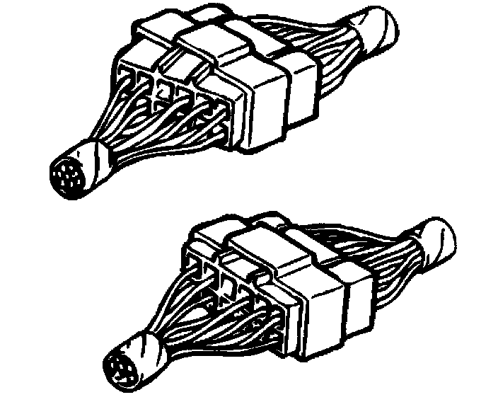 Use one side of a connector (1) with its wires cut to make the test. Connect the test connector (3) to the connector to be tested. Connect the test probes to the cut wires to check the connector continuity.
