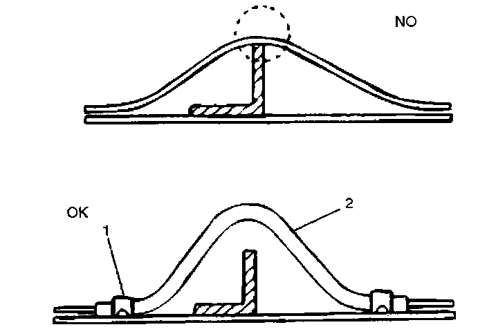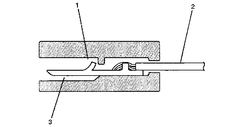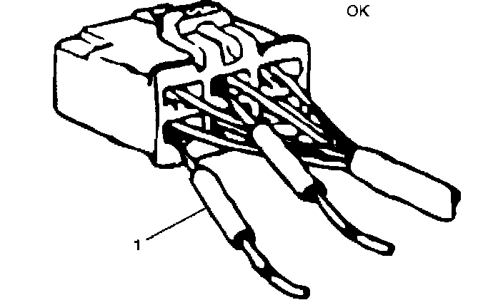 Does not let the crimping tool (2) extend beyond the edge of the clip or you may damage or nick the wires as shown in the figure.