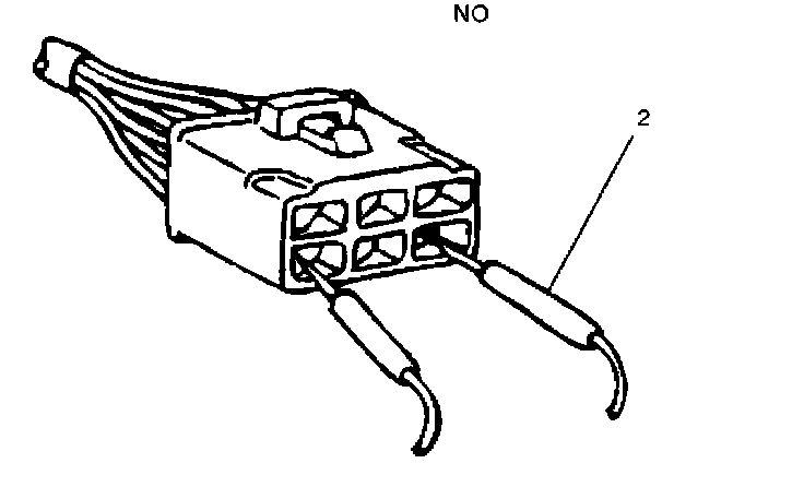 Never insert the circuit tester test probes (2) into the connector open end to test the continuity. Broken or open connector terminals will result.