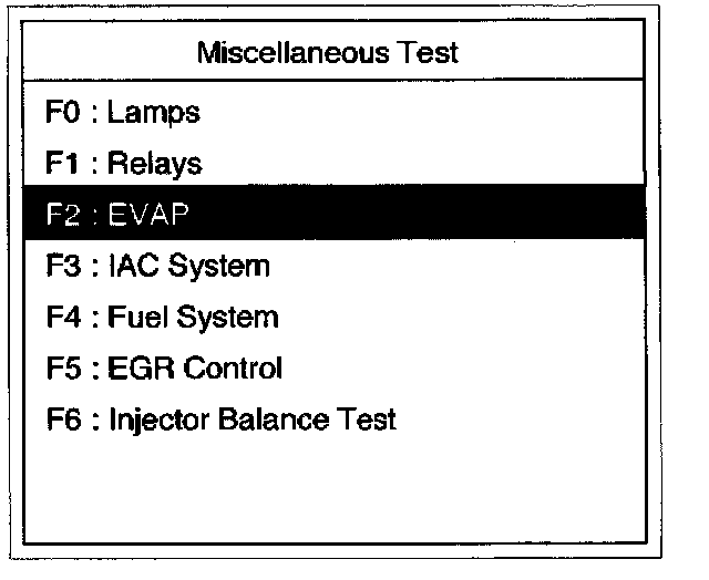 4. Select F2: EVAP Test in the Miscellaneous Test.