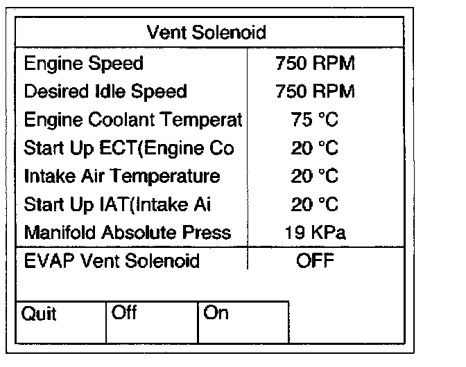 10. Select F1: EVAP Vent Solenoid.
