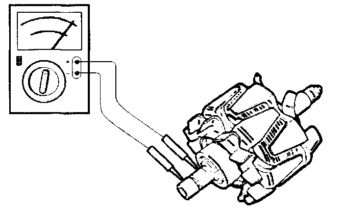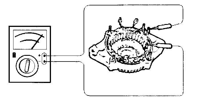 4. Check for continuity between slip ring and rotor core. In case of continuity, replace the rotor assembly.
