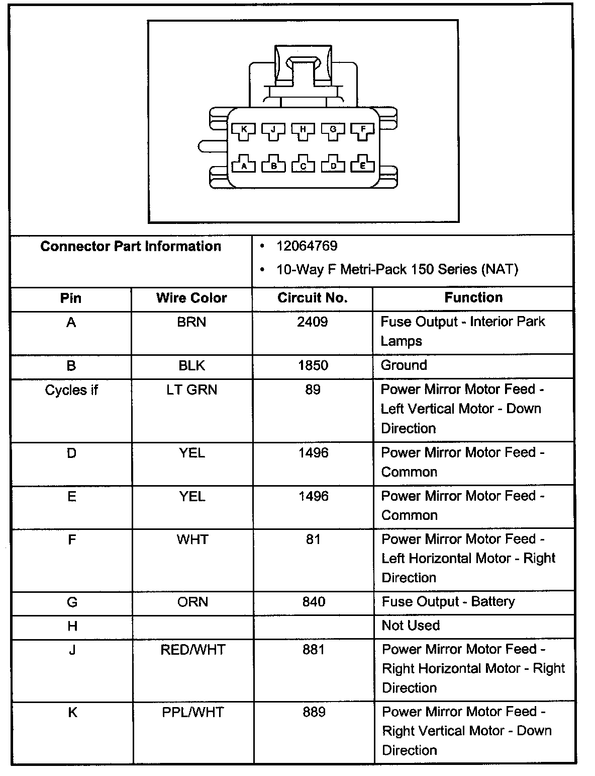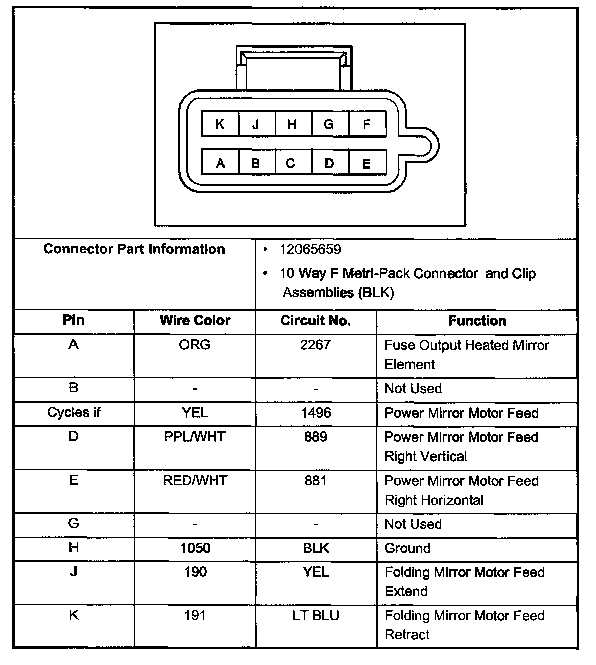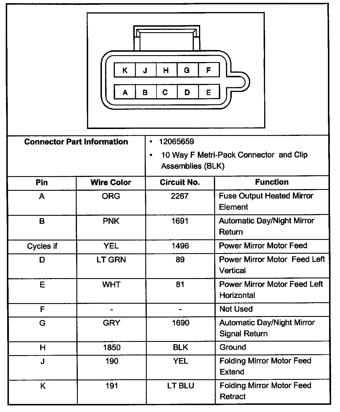 Outside Rear View Mirror Switch, Connector:
