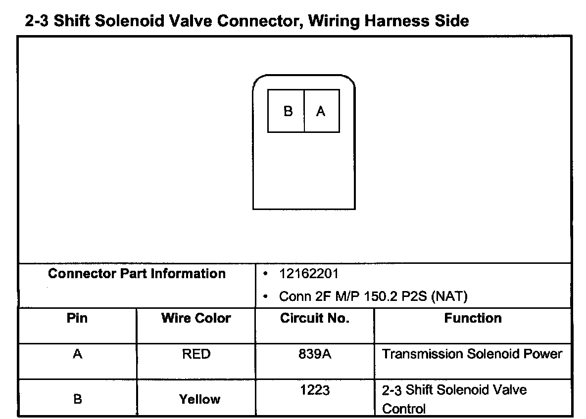 2-3 Shift Solenoid Valve Connector, Wiring Harness Side