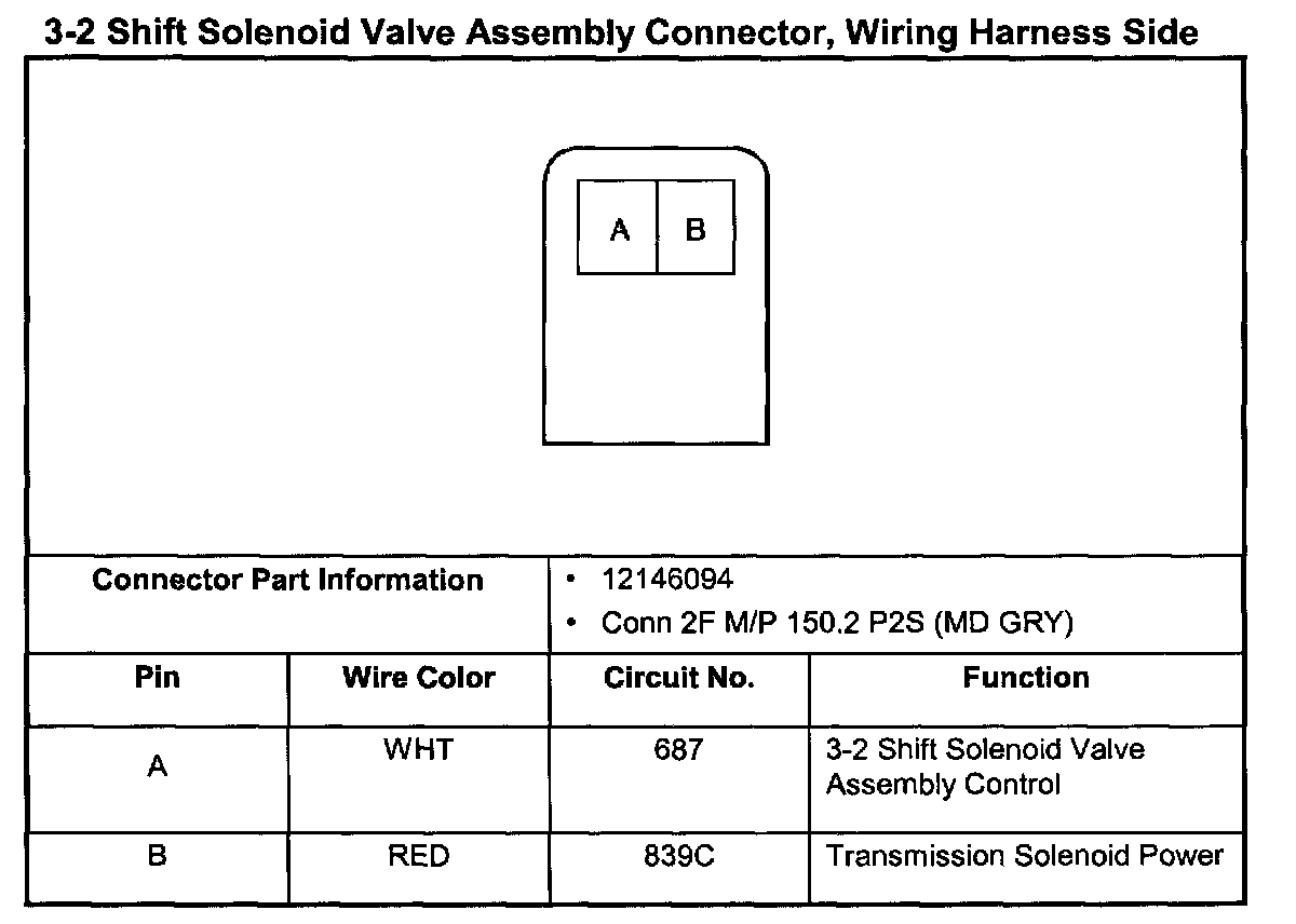 3-2 Shift Solenoid Valve Assembly Connector, Wiring Harness Side